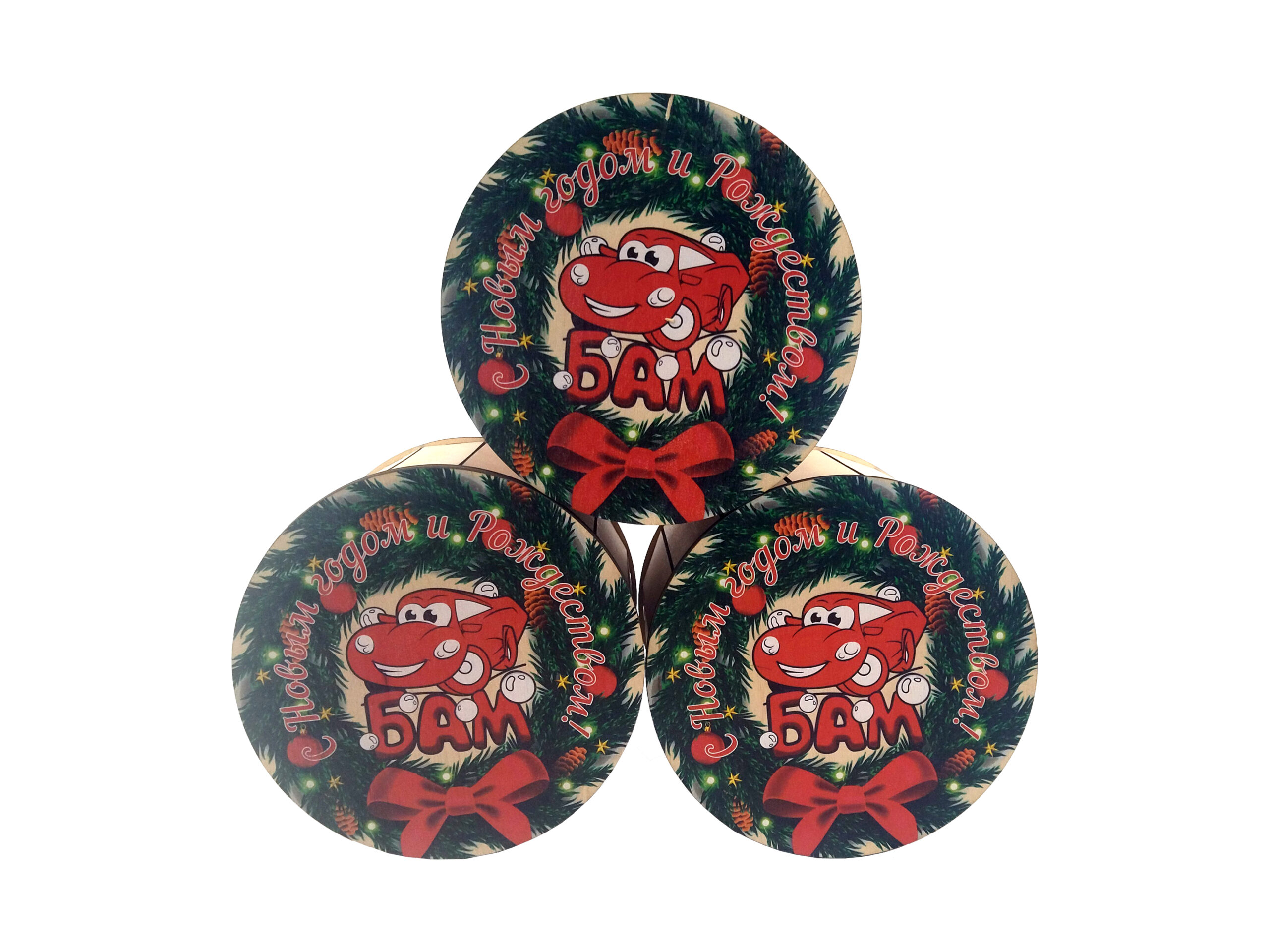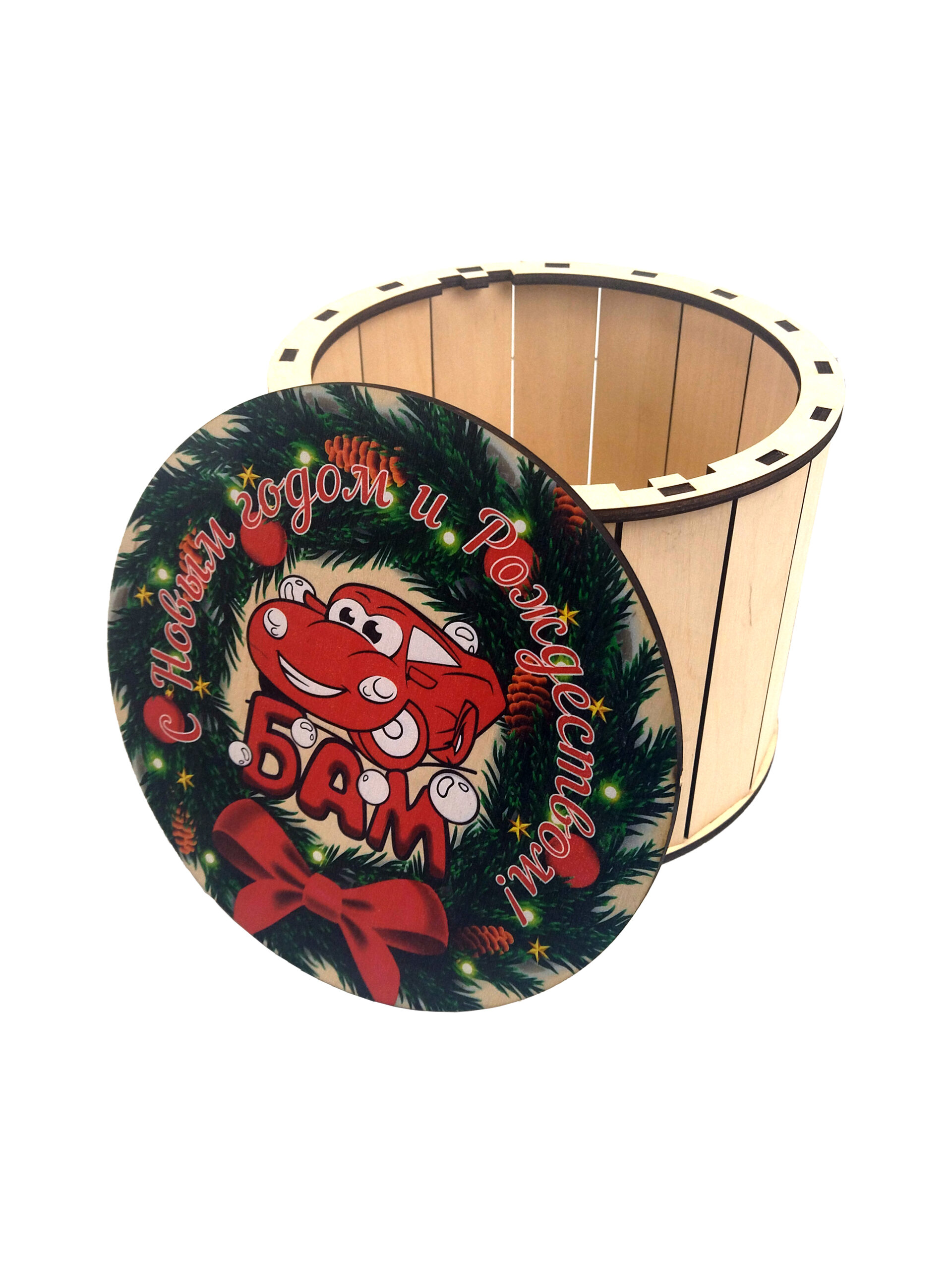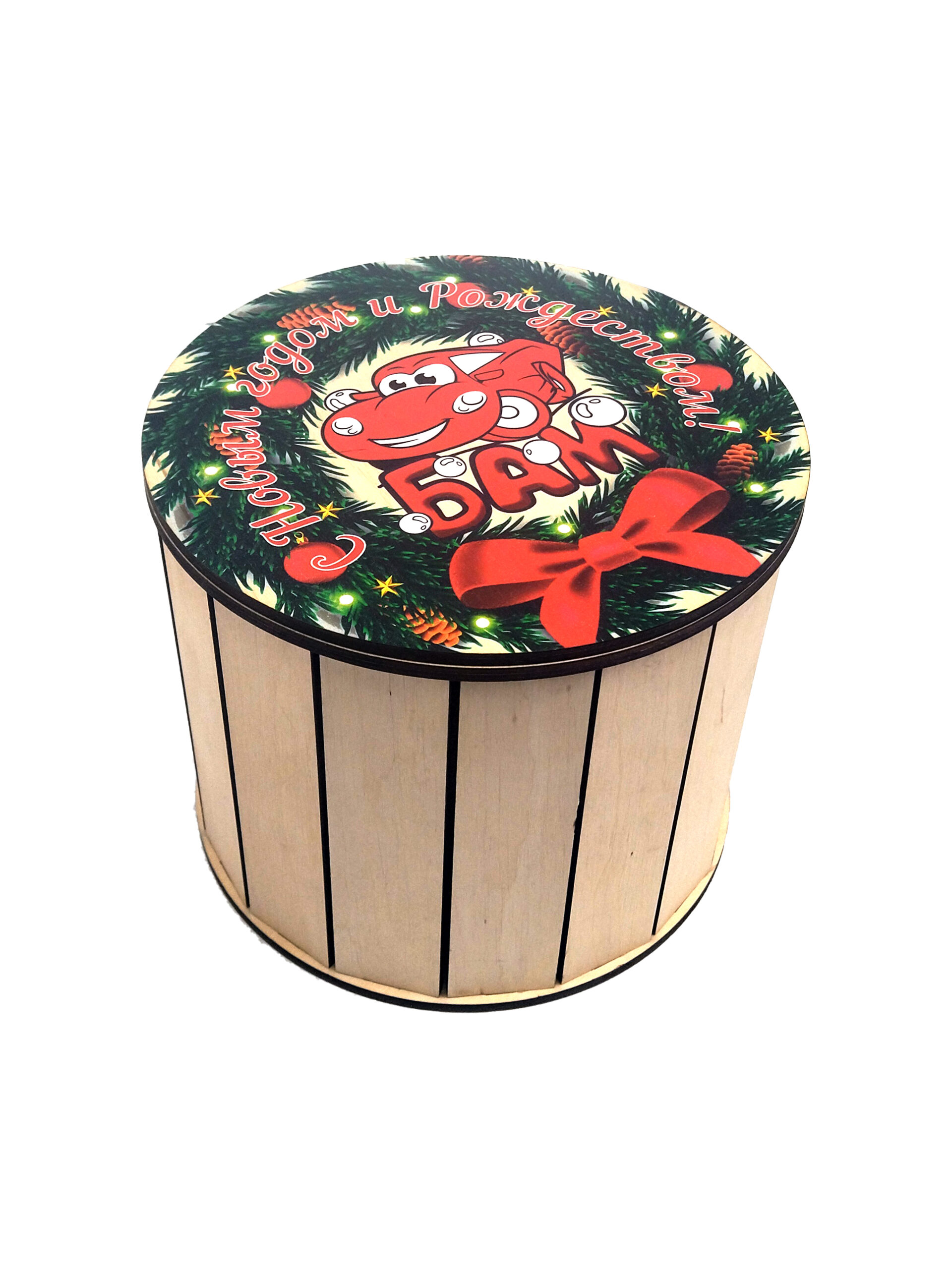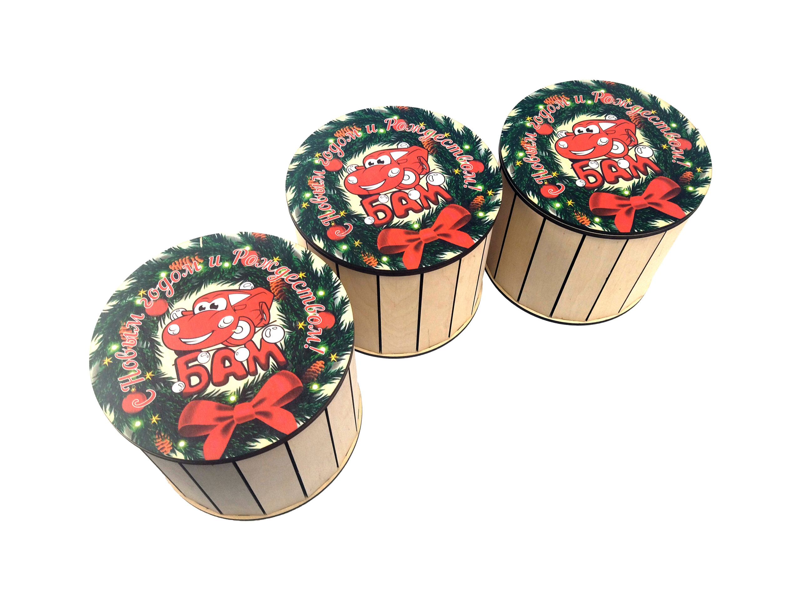 Брэндированный подарочный круглый короб с УФ-печатью. Окрас и гравировка по согласованию