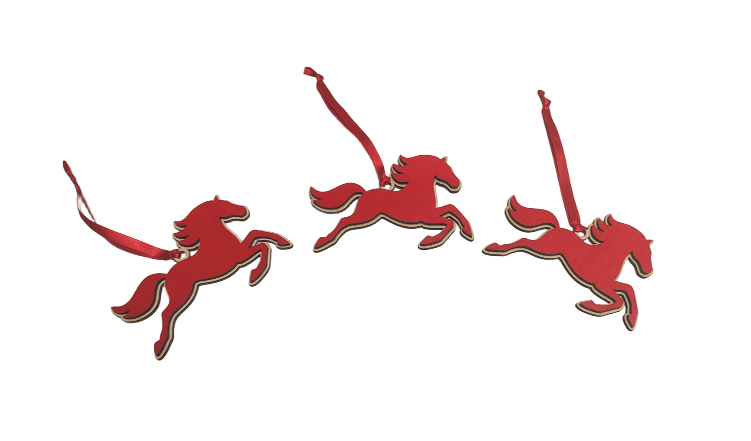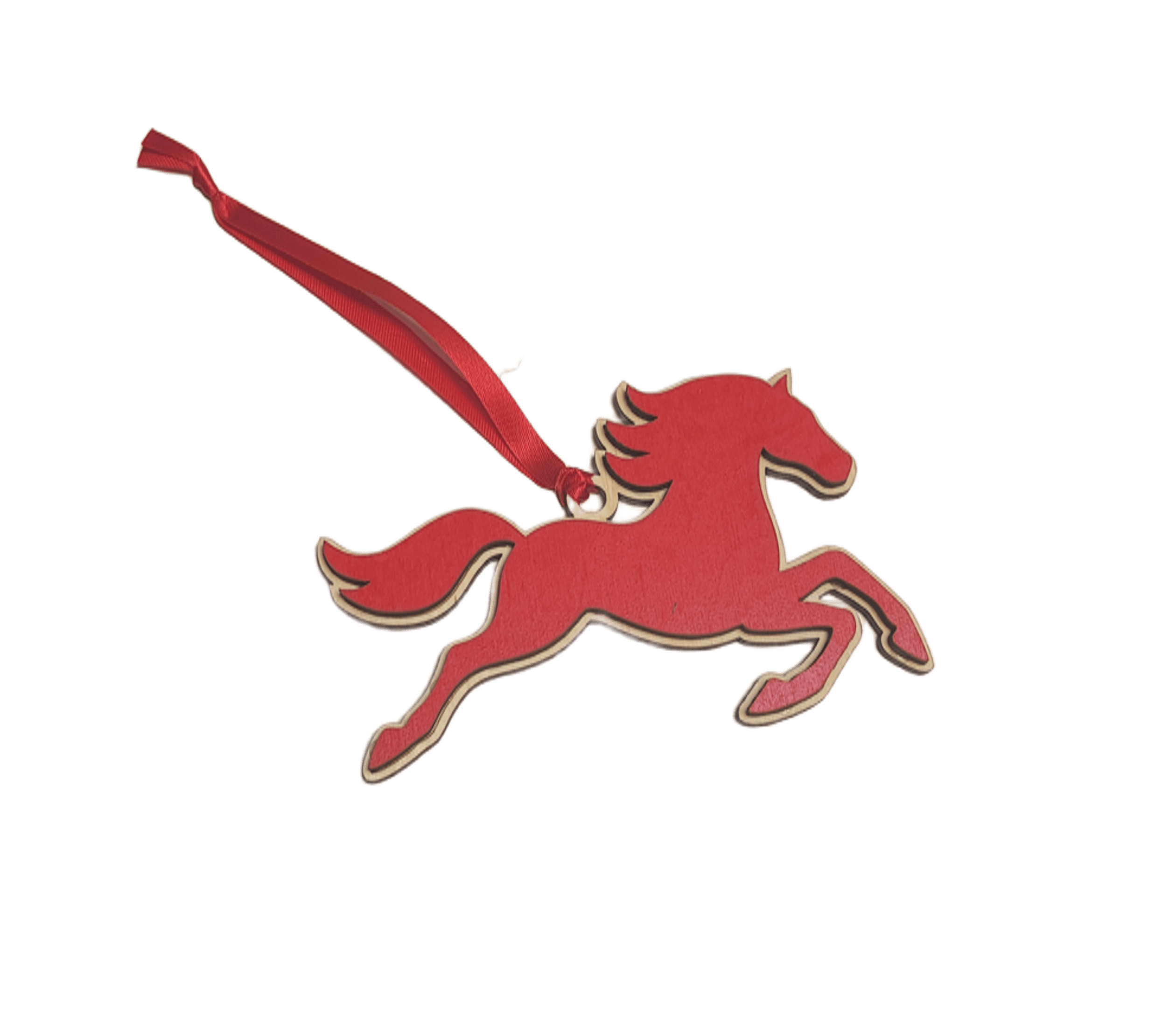 Стильная ёлочная игрушка в виде скачущего коня. Насыщенный красный цвет делает её выразительным акцентом на новогодней ёлке, а лаконичный дизайн добавляет современный штрих в праздничное оформление.