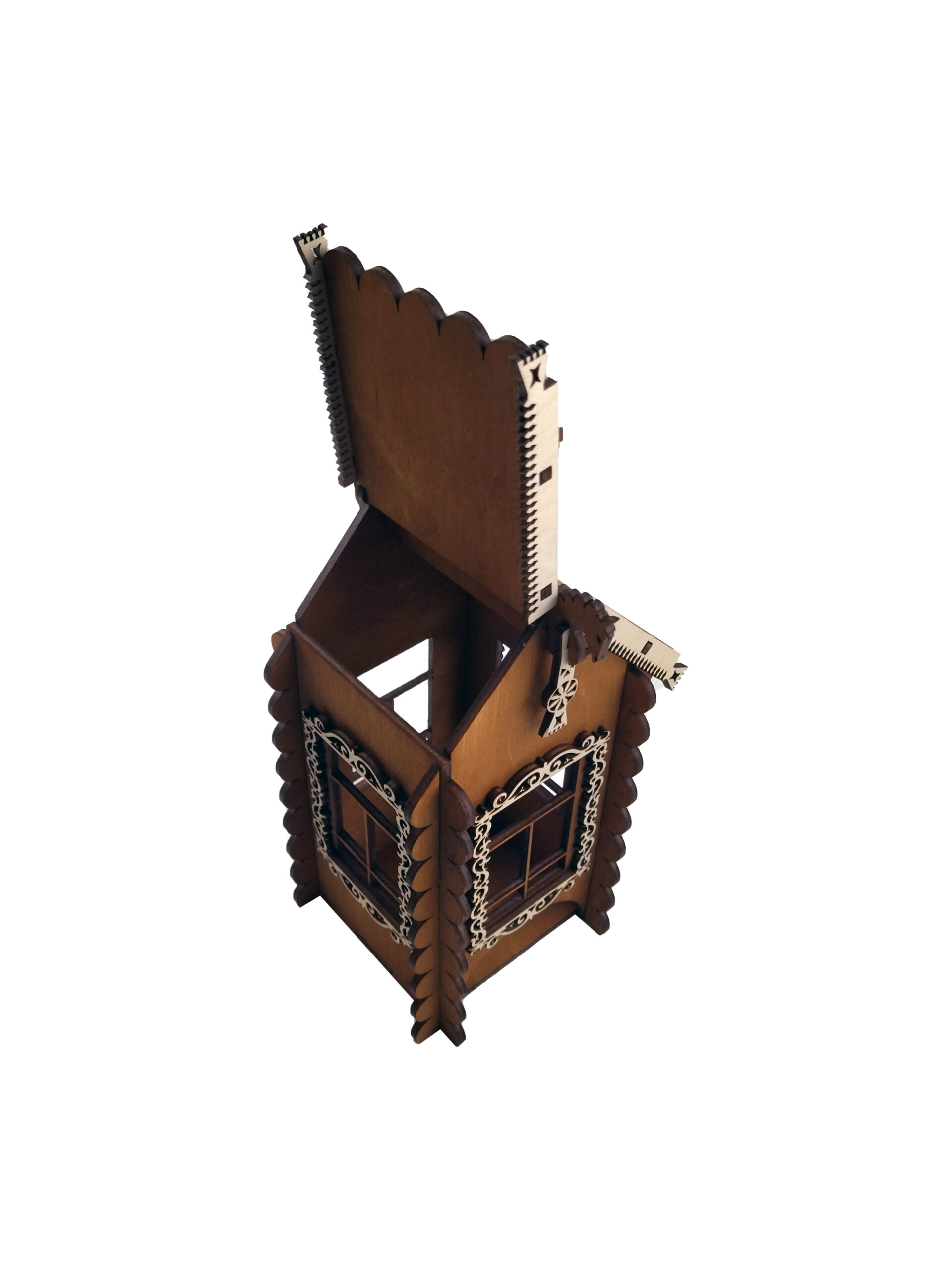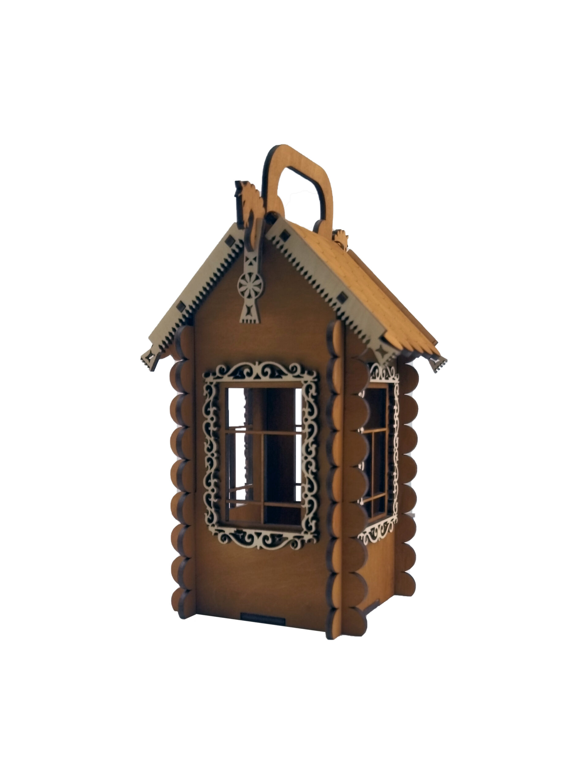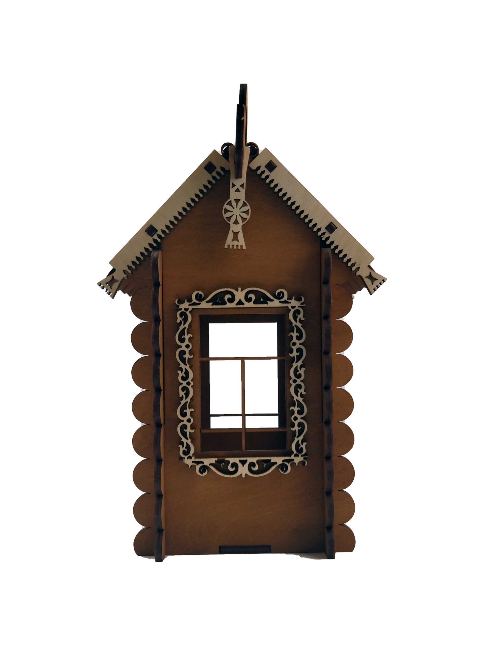 Чайный домик «Избушка», выполненный из фанеры и окрашенный водной морилкой. Окрас и гравировка по согласованию