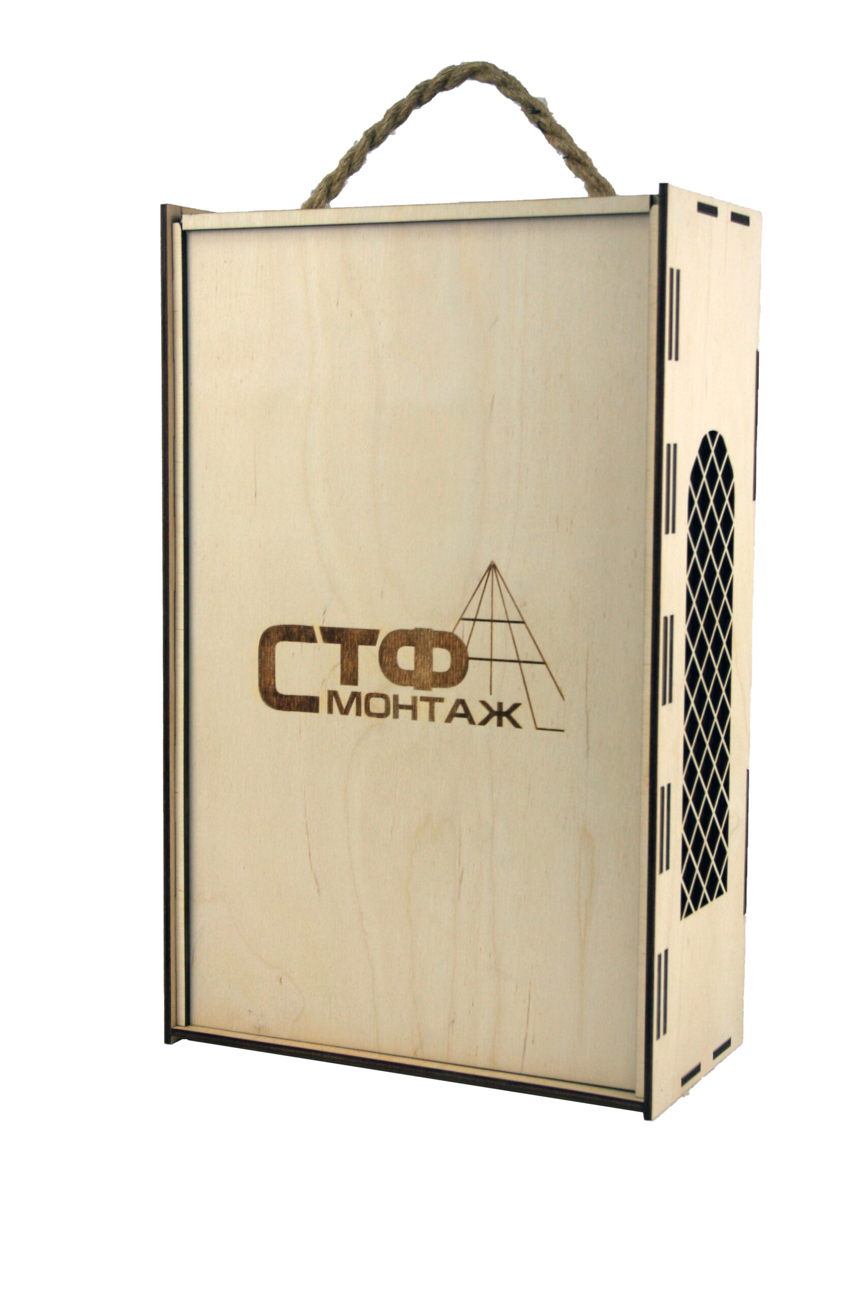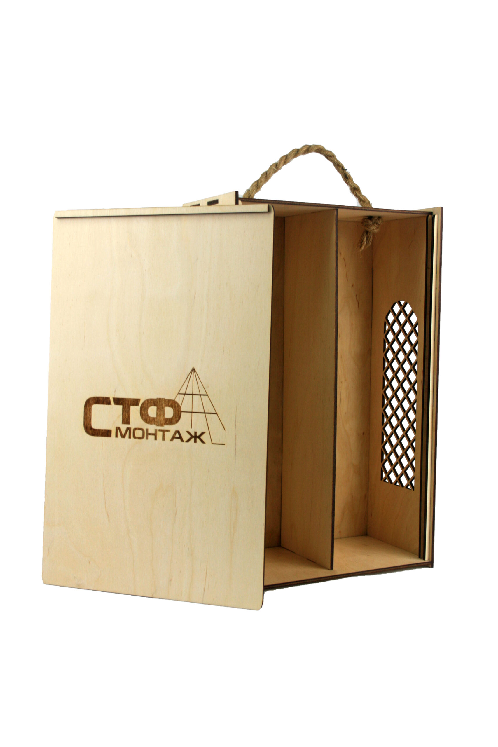 Подарочный короб для алкоголя на 2 отсека, выполненный из фанеры. Гравировка и окрас по согласованию