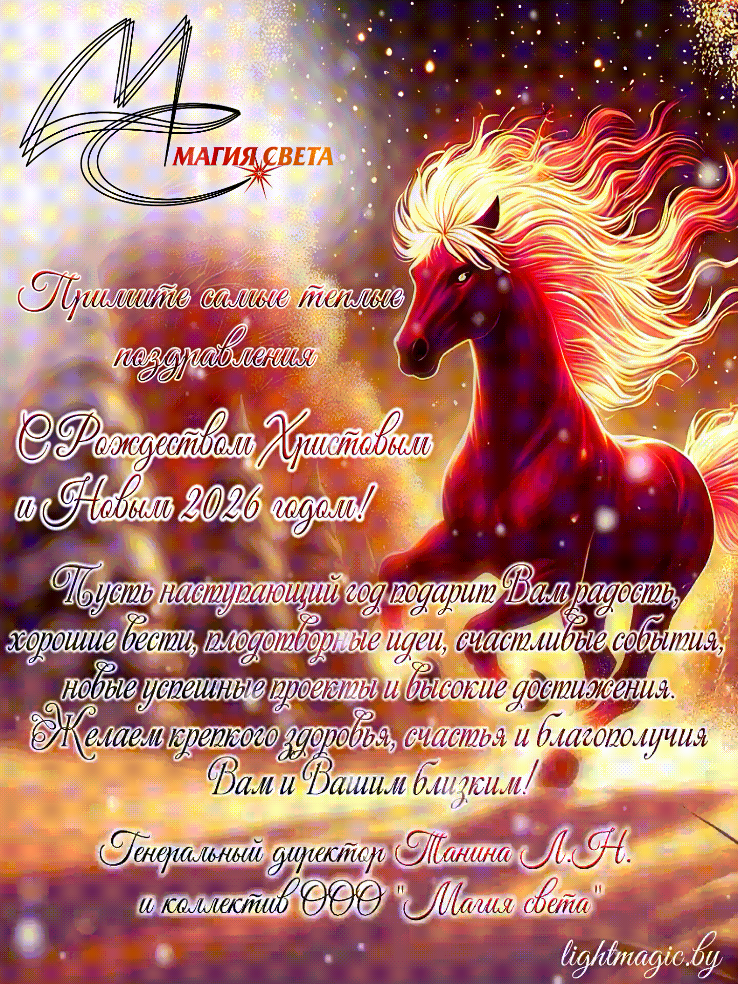Уважаемые клиенты и партнёры, поздравляем вас с наступающим Новым 2026 годом! Пусть он принесёт радость, новые возможности и вдохновение для смелых идей. Мы желаем крепкого здоровья, счастья и благополучия вам и вашим близким. Пусть каждый день будет наполнен светом и теплом!